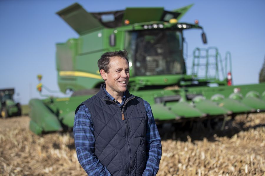 Grant Kimberley, director of market development at the Iowa Soybean Association, receives an interview at his family farm in Maxwell, the U.S. state of Iowa, Oct. 17, 2019. (Xinhua/Wang Ying)