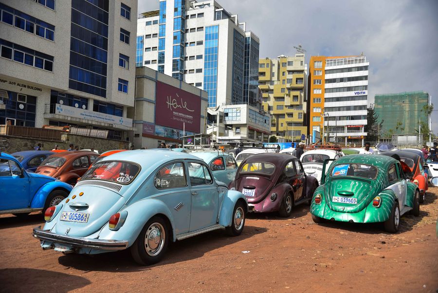 People attend Ethiopia's Volkswagen Beetles car fair in Addis Ababa, Ethiopia, Dec. 21, 2019. (Xinhua/Michael Tewelde)