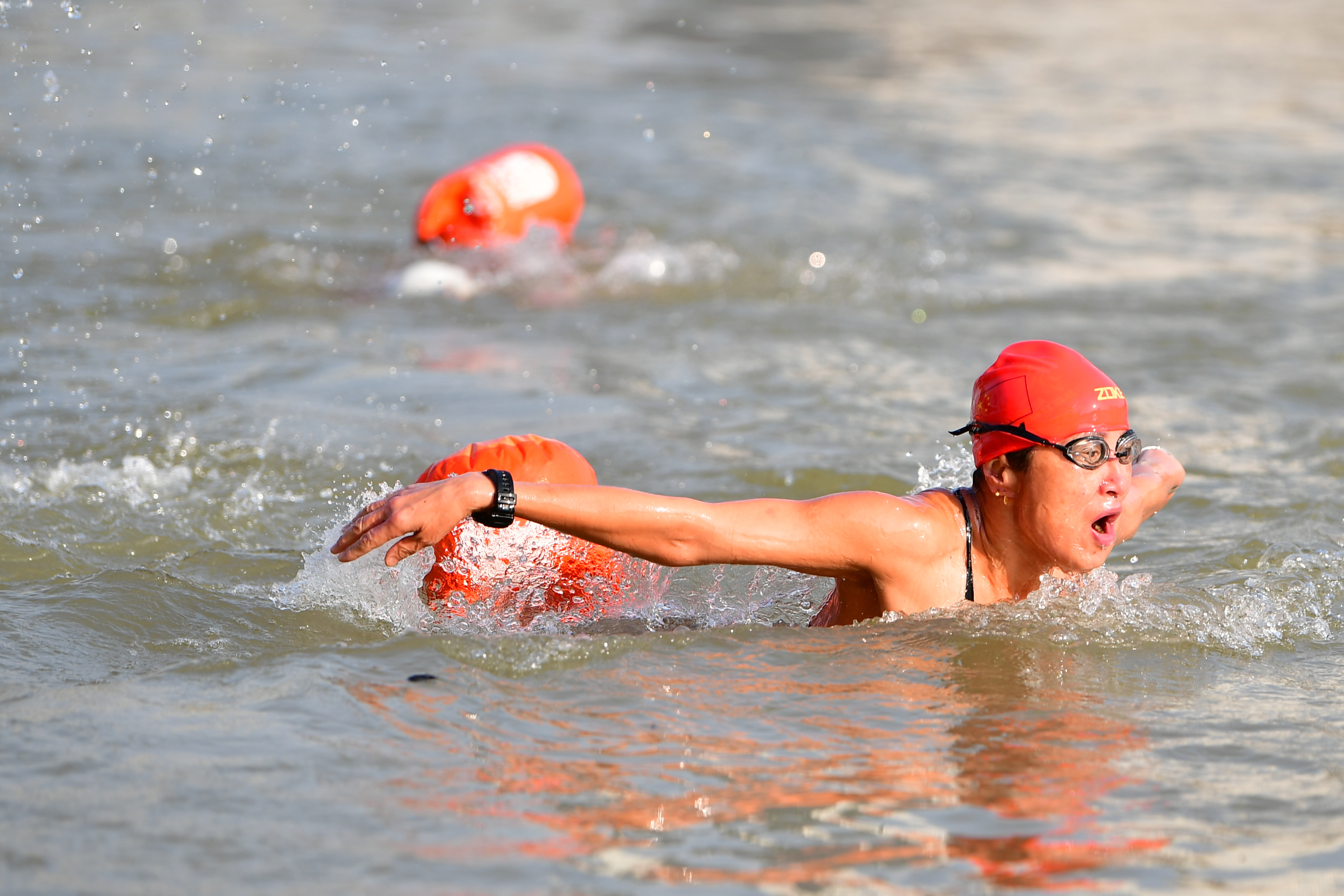 Zhang Minjie swims in the Yellow River in Lanzhou, northwest China's Gansu Province, Dec. 18, 2019. (Xinhua/Ma Ning)