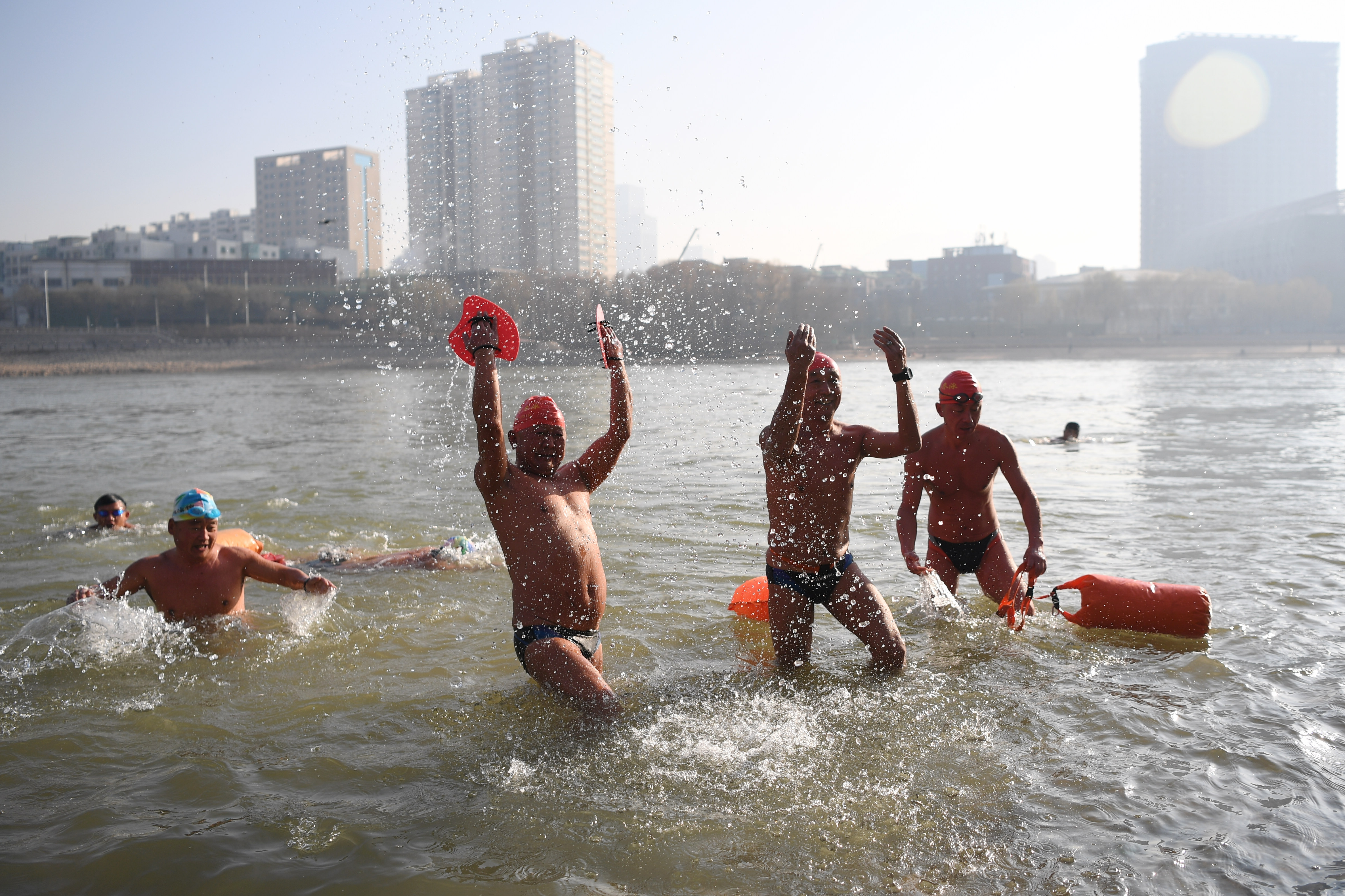 Winter swimmers plunge into the Yellow River in Lanzhou, northwest China's Gansu Province, in spite of all the challenges. Most of the swimmers are from Lanzhou Winter Swimming Association. They swim almost every day in the Yellow River, also known as the mother river of China. According to the association, its members have reached almost 400 now.