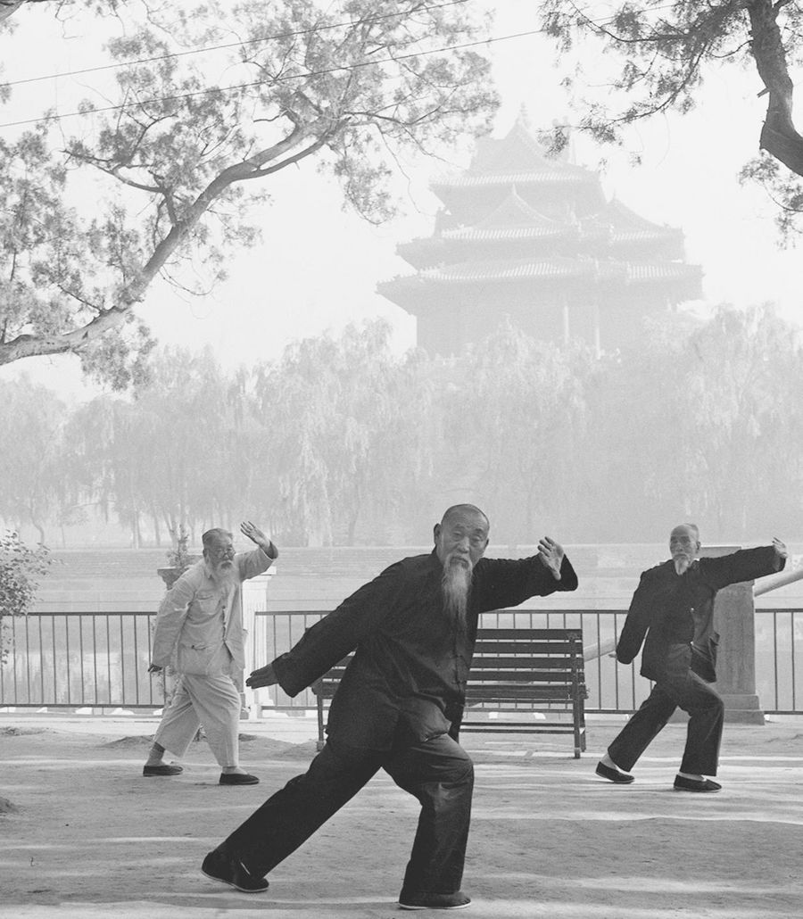 File photo taken in June 1959 shows eldly people practicing Taiji at the Zhongshan Park in Beijing, capital of China. Urban parks in China offer easy place for people to relax and unwind. (Xinhua/Tang Likui)