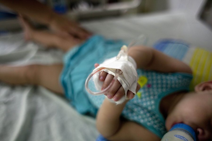 A child possibly infected with dengue virus, receives medical attention at the Hospital Escuela in Tegucigalpa, capital of Honduras, on July 5, 2013. (Xinhua/Rafael Ochoa)