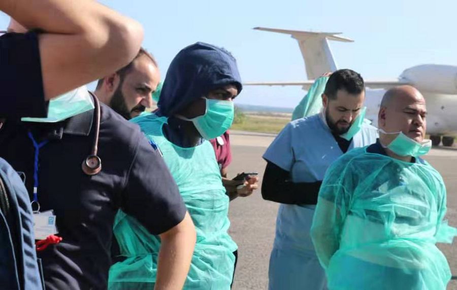 An airplane carrying health supplies and doctors arrived at the Adan Adde Airport in Somali capital Mogadishu on Dec. 30, 2019. The plane will take some of the heavily injured people of the recent terror attack in Mogadishu to get a better health service in Qatar. (Xinhua)