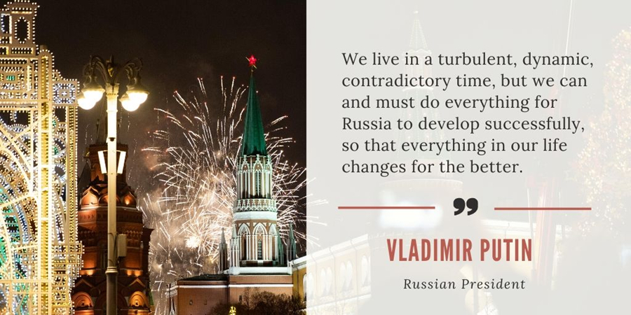 Russian President Vladimir Putin said in his New Year message for the Russian people: "We are living in turbulent, dynamic and contradictory times, but we can and must do everything for Russia to develop successfully, so that everything in our lives changes only for the better."