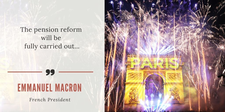 In the New Year's Eve address broadcast live on Tuesday evening, French President Emmanuel Macron vowed to push through the government's pension reform plan, which was met with union-led national strikes in December.