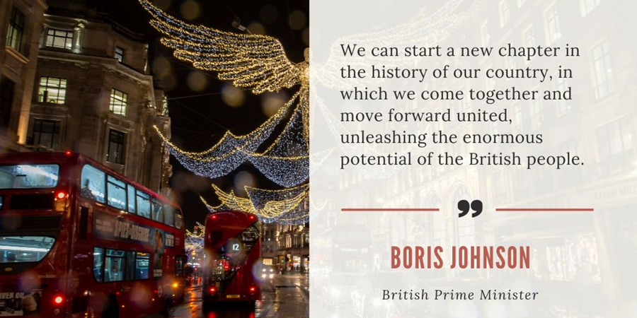 The promise to take Britain out of the European Union by the end of January was reaffirmed, and national efforts to usher in a remarkable decade of prosperity and opportunity were urged by Prime Minister Boris Johnson in his first New Year message at 10 Downing Street.
