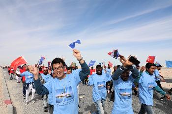 China Gezhouba Group Corporation (CGGC), a Chinese company undertaking a construction project in Kuwait, holds a walkathon joined by company's employees to celebrate the New Year.
