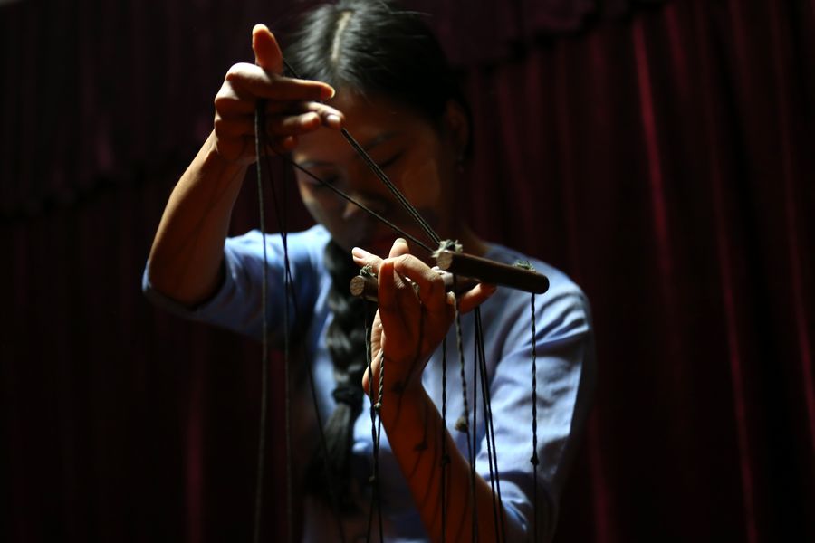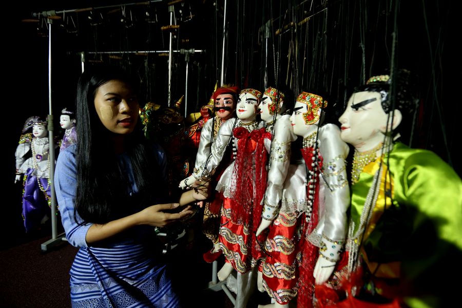Late veteran puppeteer U Maung Kyi was her first teacher. "My debut stage was not here at my family's theater, but the other show where we were invited to perform," Thet told Xinhua, adding that her first-day jitters made it hard to stand calmly in front of the audience.