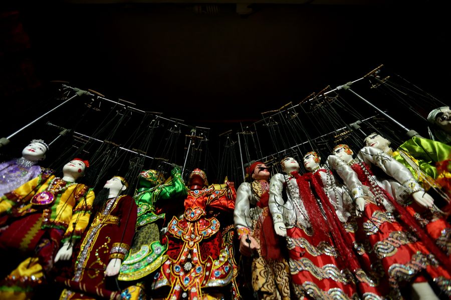 Myanmar traditional puppets are seen at Thet Thet Htwe Oo's family-run theatre in Yangon, Myanmar, Dec. 31, 2019. (Xinhua/U Aung)