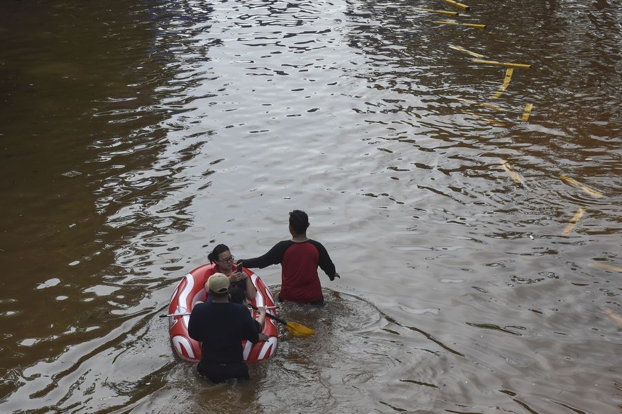 JAKARTA, Jan. 3 (Xinhua) -- Torrential rains since New Year's Eve have pounded Indonesian capital of Jakarta and its peripheral areas, causing massive floods. Evacuation of people from flood-affected areas is udnerway as waters still submerge several parts of the city.