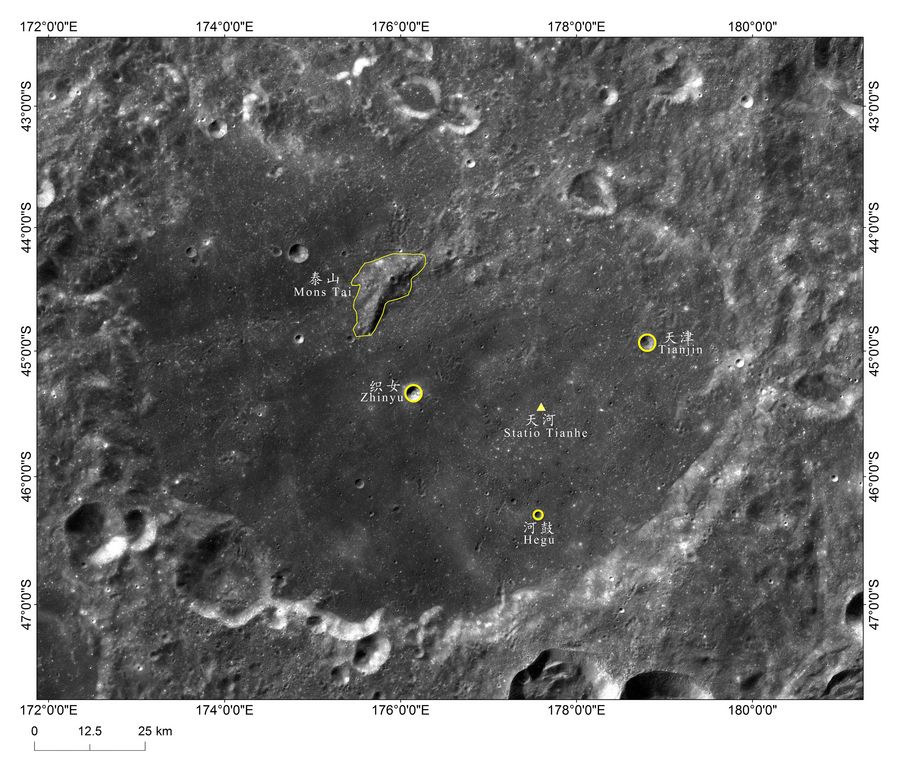 The landing site of the probe has been named "Statio Tianhe." "Tianhe" is the Chinese word for the Milky Way and "Statio" is Latin for base.