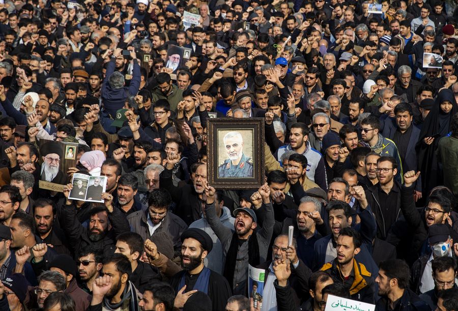 People attend a protest against the killing of top Iranian commander Qasem Soleimani in Tehran, Iran, on Jan. 3, 2020. (Xinhua/Ahmad Halabisaz)