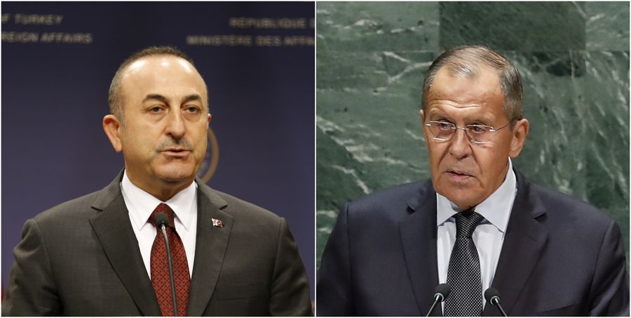 Xinhua file photos of Russian Foreign Minister Sergei Lavrov (R) and Turkish Foreign Minister Mevlut Cavusoglu