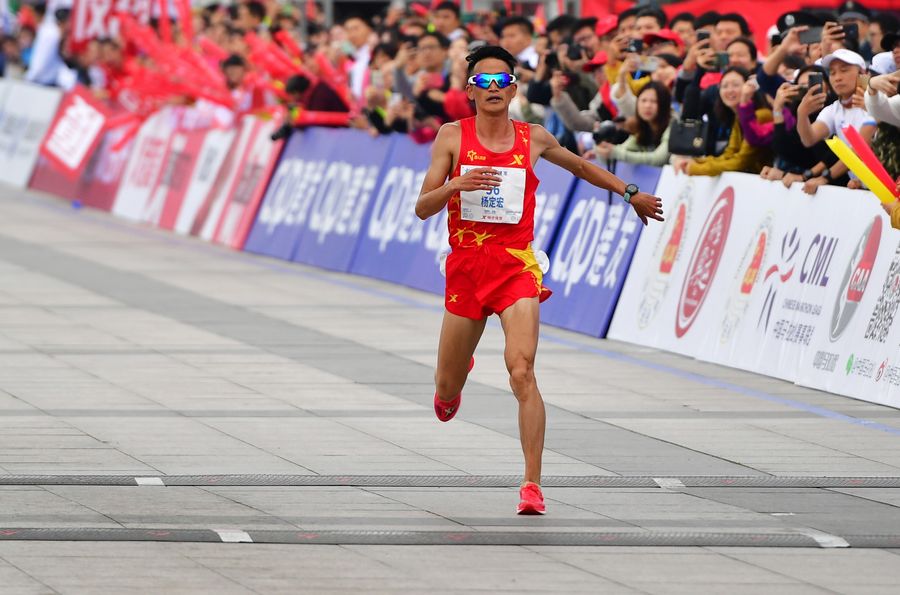 Chinese runner Yang Dinghong timed 2:13:50 in Sunday's race, ranking first among Chinese athletes in men's event.