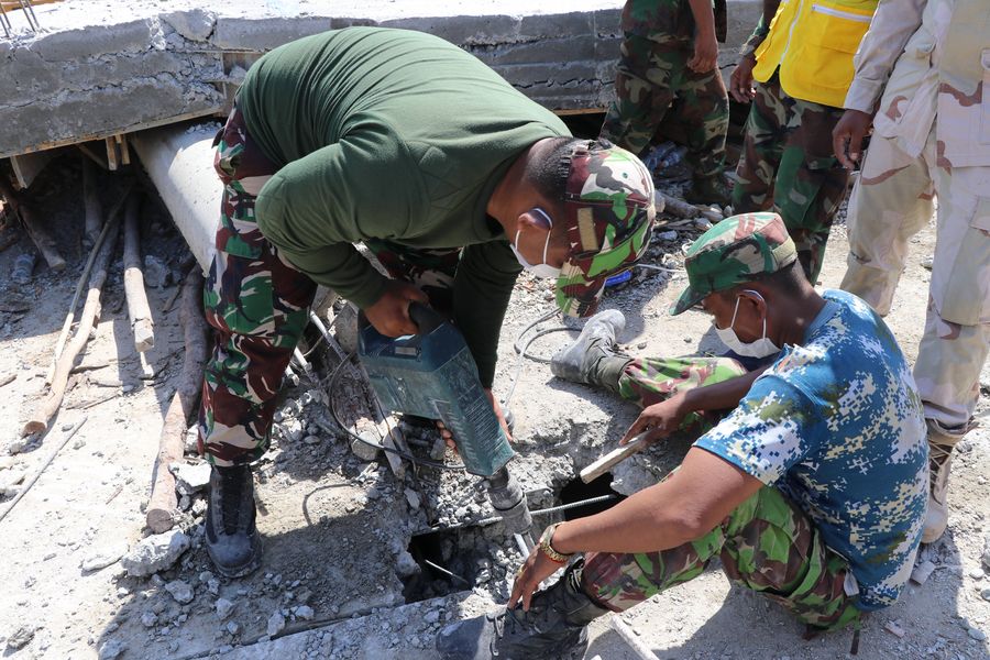 Some 14 excavators, three crane trucks, two bulldozers, 10 ambulances, five firetrucks, and more than 10 dumper trucks have been used to remove the debris of the collapsed building.