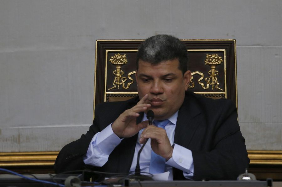 The new president of Venezuela's National Assembly, Luis Parra, participates in a session of the legislative body, in Caracas, Venezuela on Jan. 7, 2020. (Xinhua/Str)