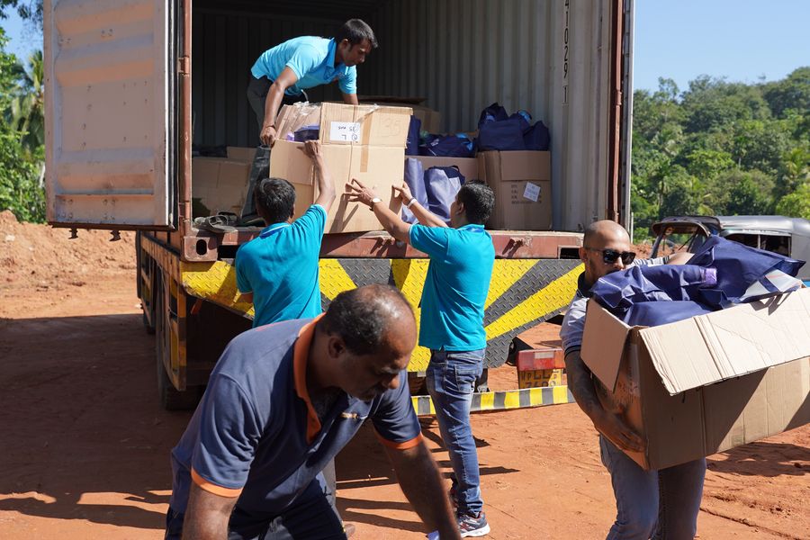 On. Dec. 27, the staff of Colombo International Container Terminal Co., Ltd. (CICT) of China Merchants Group visited Pannila and distributed school bags and stationery to about 300 students, who will begin a new school year in January.