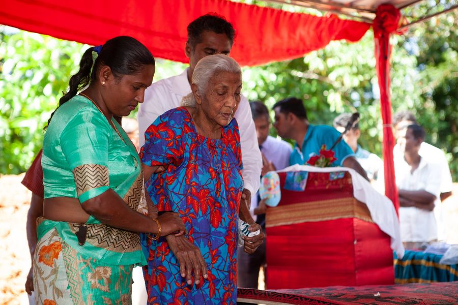 An elderly woman attends the gift-awarding ceremony held in Pannila, a remote village in western Sri Lanka, Dec. 27, 2019. (Photo provided by Colombo International Container Terminal Co., Ltd.)