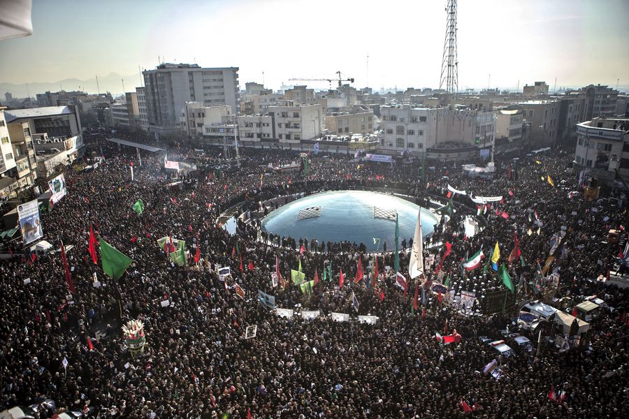 People attend the funeral ceremony of Iranian general Qassem Soleimani in Tehran, Iran, Jan. 6, 2020. (Photo by Ahmad Halabisaz/Xinhua)