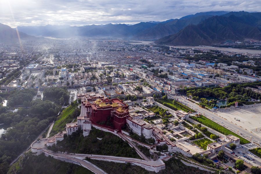 Photo taken on Aug. 10, 2019 shows the old town of Lhasa, capital city of southwest China's Tibet Autonomous Region. (Xinhua/Purbu Zhaxi)