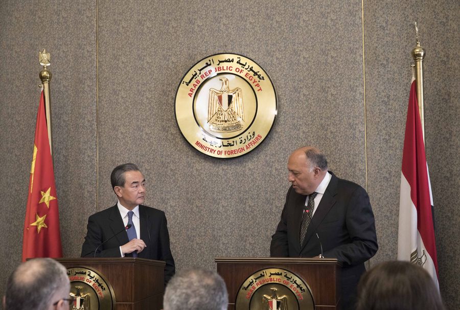 Chinese State Councilor and Foreign Minister Wang Yi (L) and Egypt's Foreign Minister Sameh Shoukry attend a joint press conference in Cairo, Egypt, Jan. 8, 2020. (Xinhua/Li Binian)