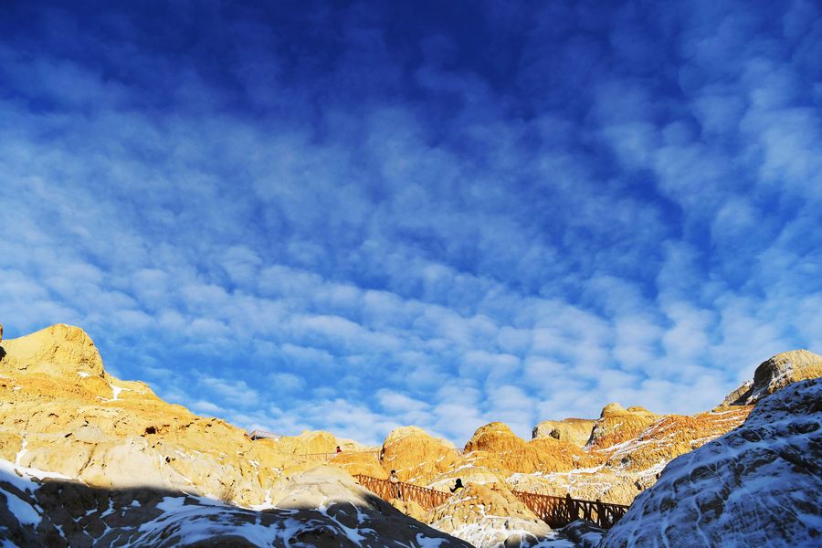 Photo taken on Nov. 26, 2019 shows the scenery of a scenic spot of Ulunggur Lake in Fuhai County, northwest China's Xinjiang Uygur Autonomous Region. (Xinhua/Sadat)