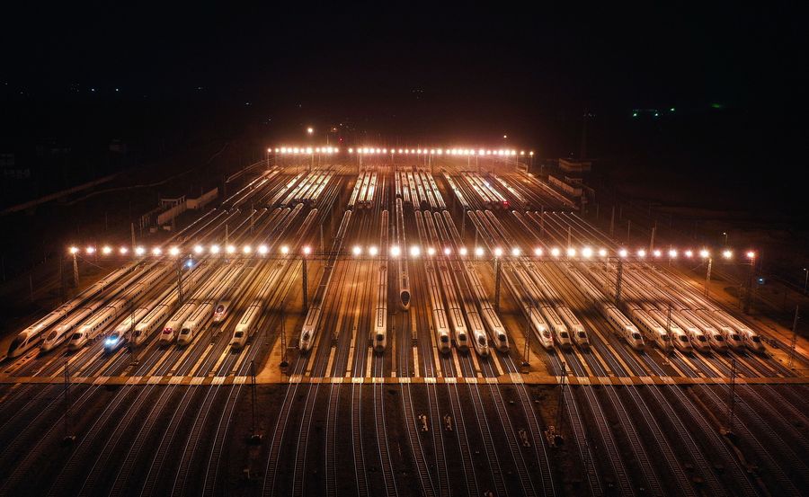 The high-speed trains gear up for Spring Festival travel rush after overhaul in Nanning, south China's Guangxi Zhuang Autonomous Region, Jan. 10, 2020. (Xinhua/Cao Yiming)