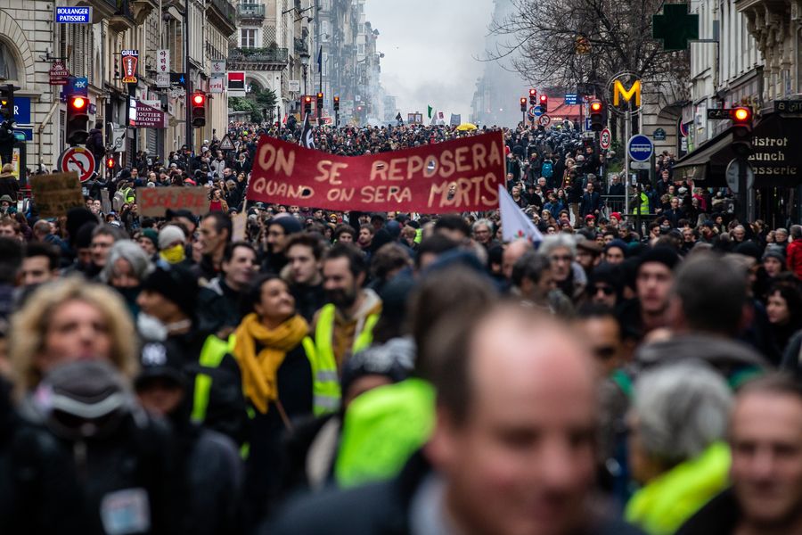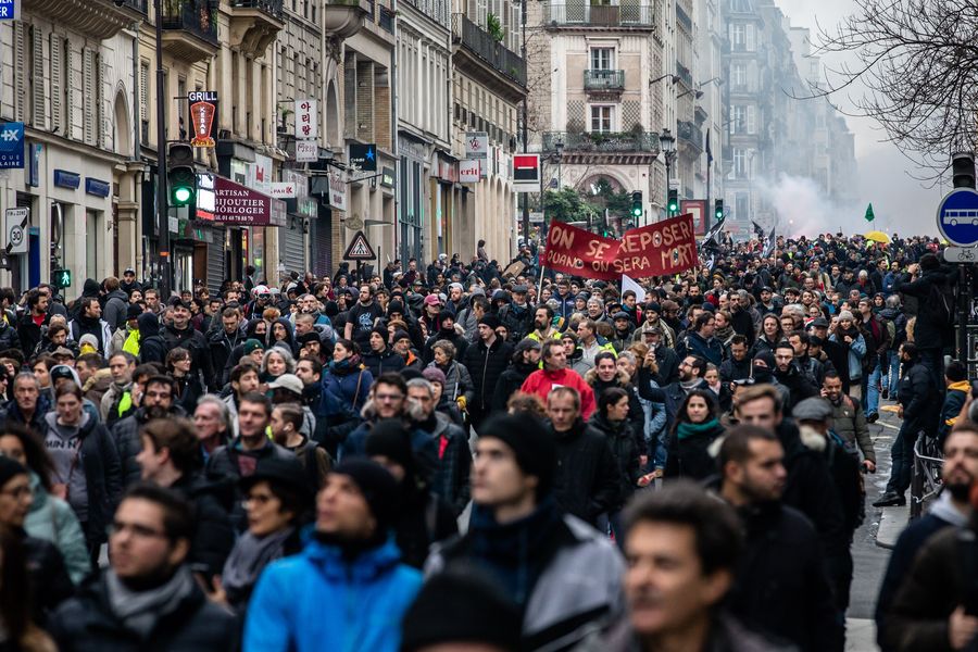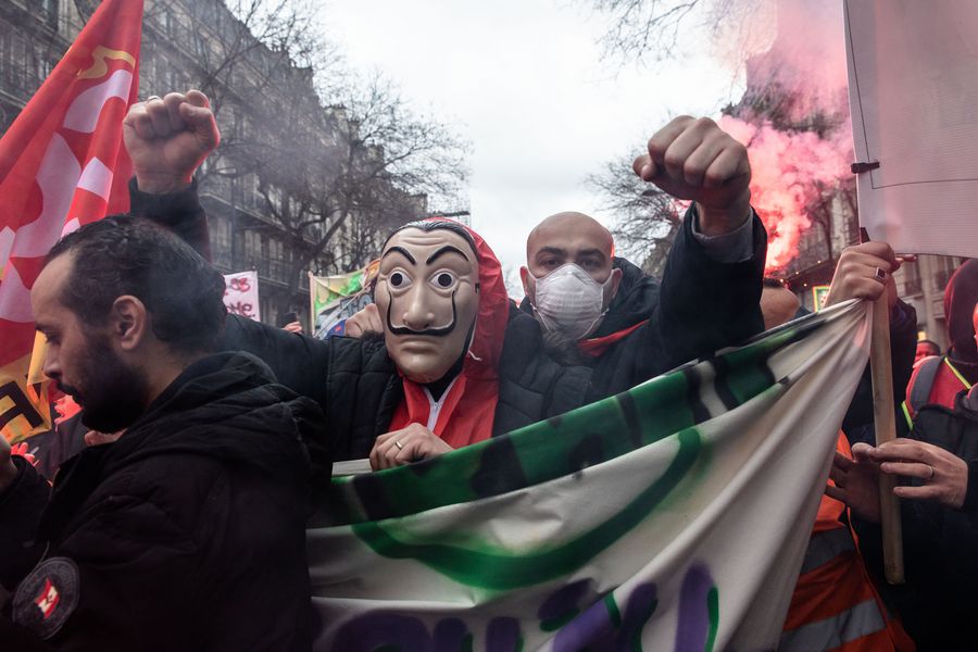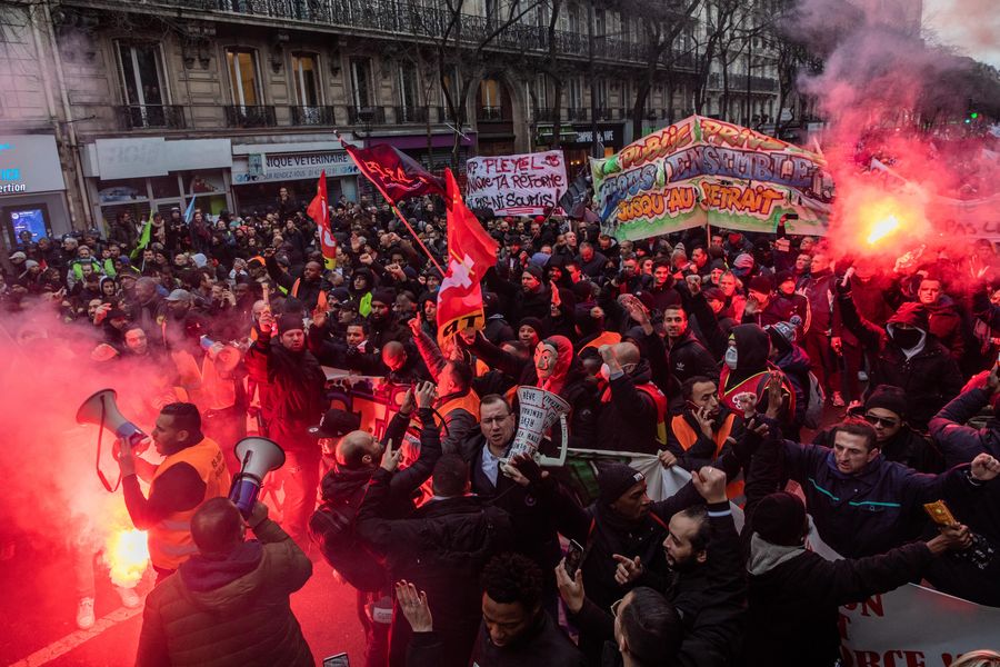 Protestors take part in a demonstration in Paris, France, on Jan. 9, 2020.(Photo by Aurelien Morissard/Xinhua)