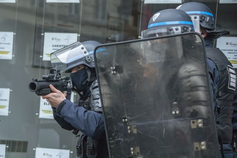 Police stand guard as protestors take part in a demonstration in Paris, France, on Jan. 9, 2020.(Photo by Aurelien Morissard/Xinhua)