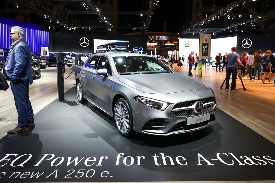 Photo taken on Jan. 9, 2020 shows a Mercedes-Benz A 250 e car at the 98th Brussels Motor Show in Brussels, Belgium.(Xinhua/Zhang Cheng)