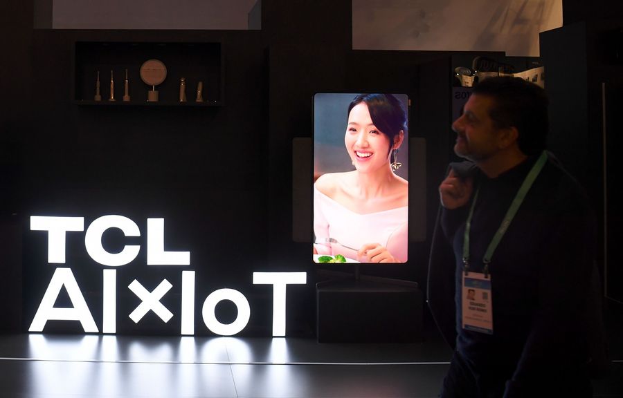 A man visits TCL's booth at the 2020 Consumer Electronics Show (CES) in Las Vegas, the United States, Jan. 7, 2020. (Xinhua/Wu Xiaoling)