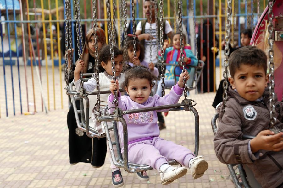 Children, who lost their relatives in the ongoing war, enjoy an open day for war-affected children at an amusement park in Sanaa, Yemen, on Jan. 11,2020. (Xinhua/Mohammed Mohammed)