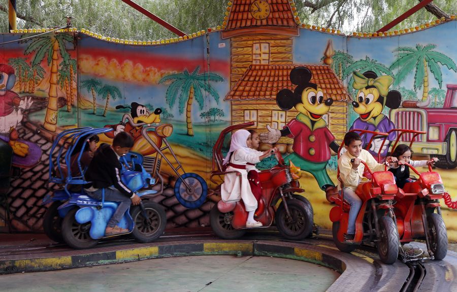 Children, who lost their relatives in the ongoing war, enjoy an open day for war-affected children at an amusement park in Sanaa, Yemen, on Jan. 11, 2020.(Xinhua/Mohammed Mohammed)