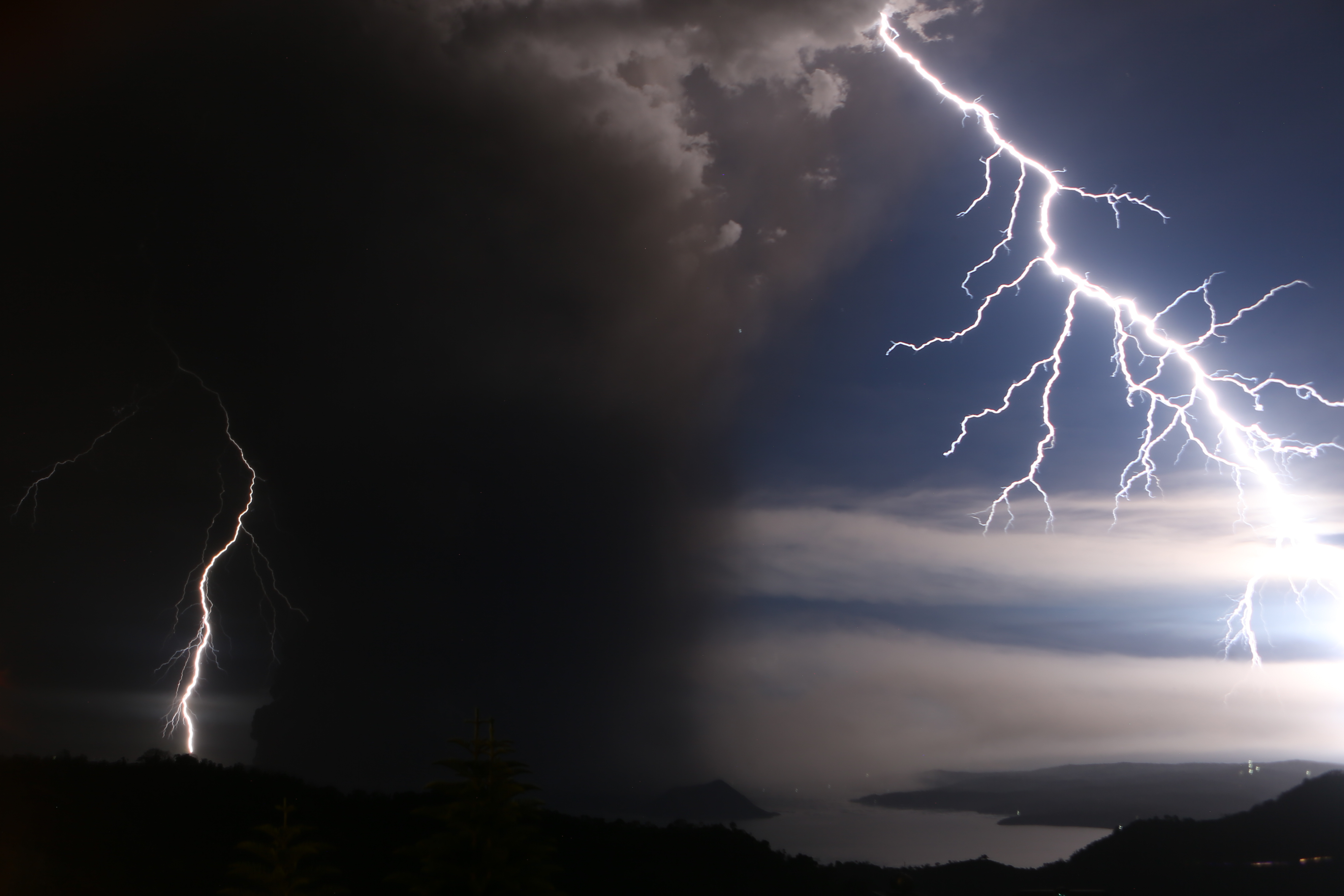 Lightning flashes as the Taal volcano erupts in Tagaytay, the Philippines, Jan. 12, 2020. (Xinhua/Rouelle Umali)