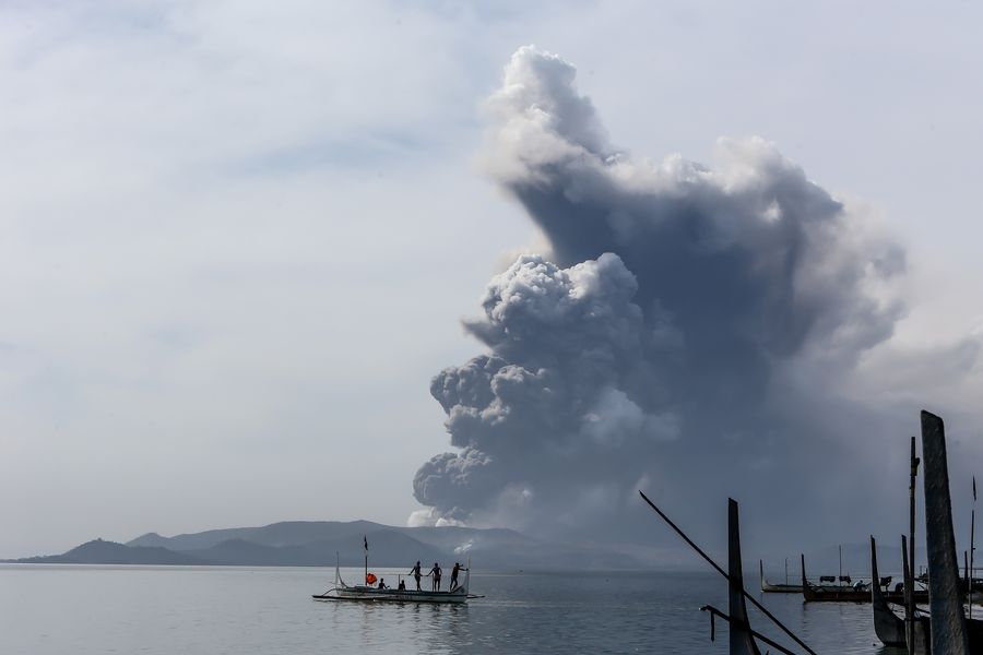 The Philippine Institute of Volcanology and Seismology increased the alert level for Taal Volcano in Talisay town in Batangas, approximately 66 km south of Manila, on Sunday to 4 on a scale of 5, indicating an increased prospect of a hazardous eruption "within hours to days." (Xinhua/Rouelle Umali)