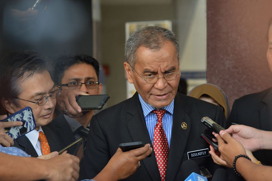 Japanese Ambassador to Malaysia Hiroshi Oka (L, front) and Malaysian Health Minister Dzulkefly Ahmad (R, front) talk to the media after visiting Momota Kento at a hospital in Putrajaya, Malaysia, Jan. 13, 2020. Japan's badminton player Momota Kento was injured in traffic accident in Malaysia on early Monday. He is in stable condition despite a minor injury, police and badminton officials said. (Xinhua/Chong Voon Chung)