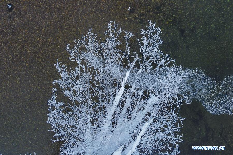 Aerial photo taken on Jan. 14, 2020 shows the frosty scenery in Dahinggan, northeast China's Heilongjiang Province. (Xinhua/Zhang Tao)
