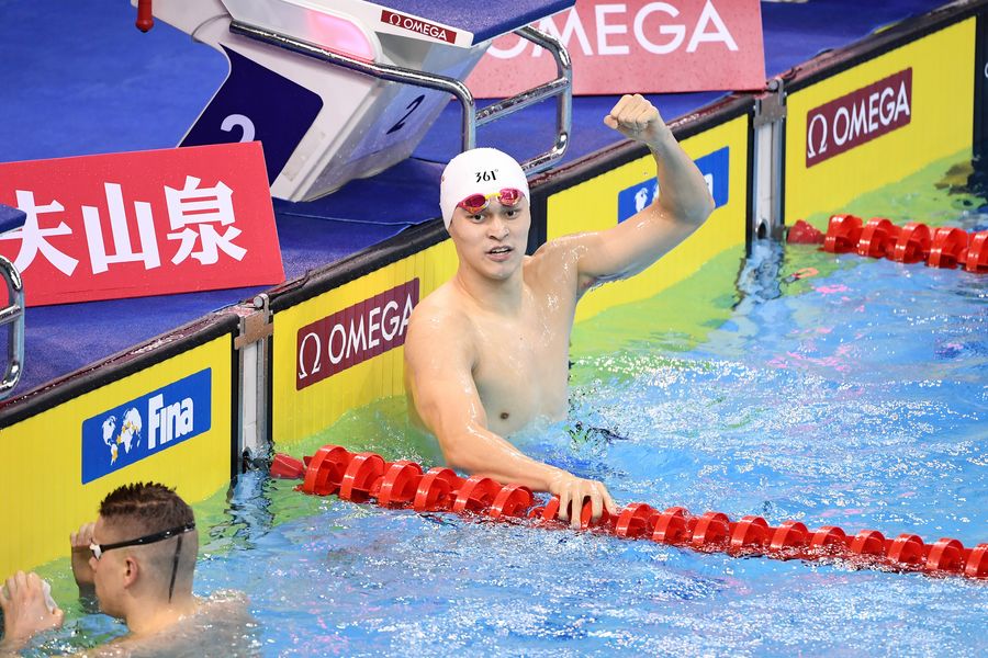 Three-time Olympic champion Sun Yang triumphs in 400m freestyle at FINA Champions Swim Series.