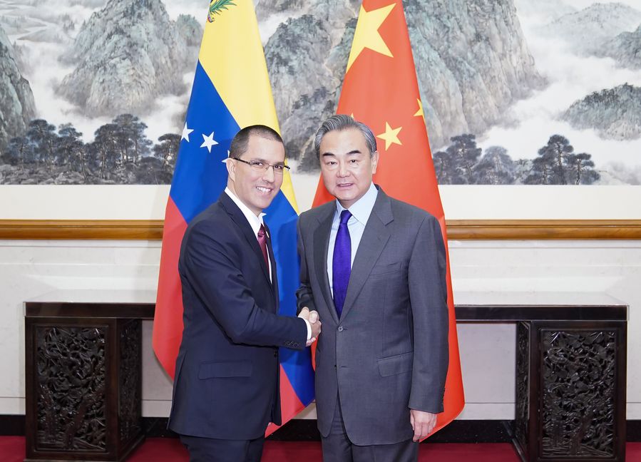 Chinese State Councilor and Foreign Minister Wang Yi holds talks with visiting Venezuelan Foreign Minister Jorge Arreaza in Beijing, capital of China, Jan. 16, 2020. (Xinhua/Li Xiang)