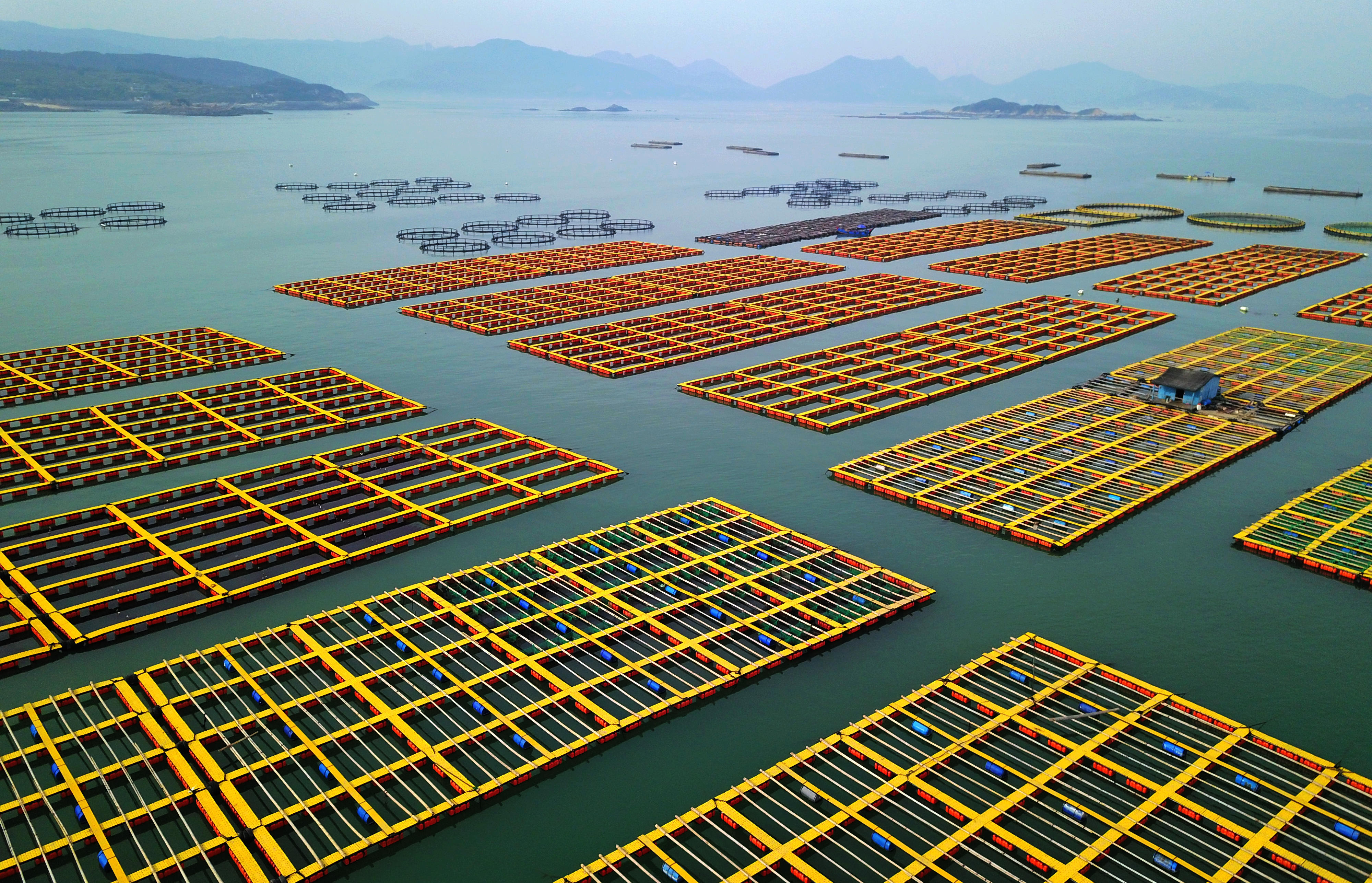 Aerial photo taken on April 18, 2019 shows an abalone breeding base in Xiaocheng Town, Lianjiang County, southeast China's Fujian Province. (Photo by Wei Peiquan/Xinhua)