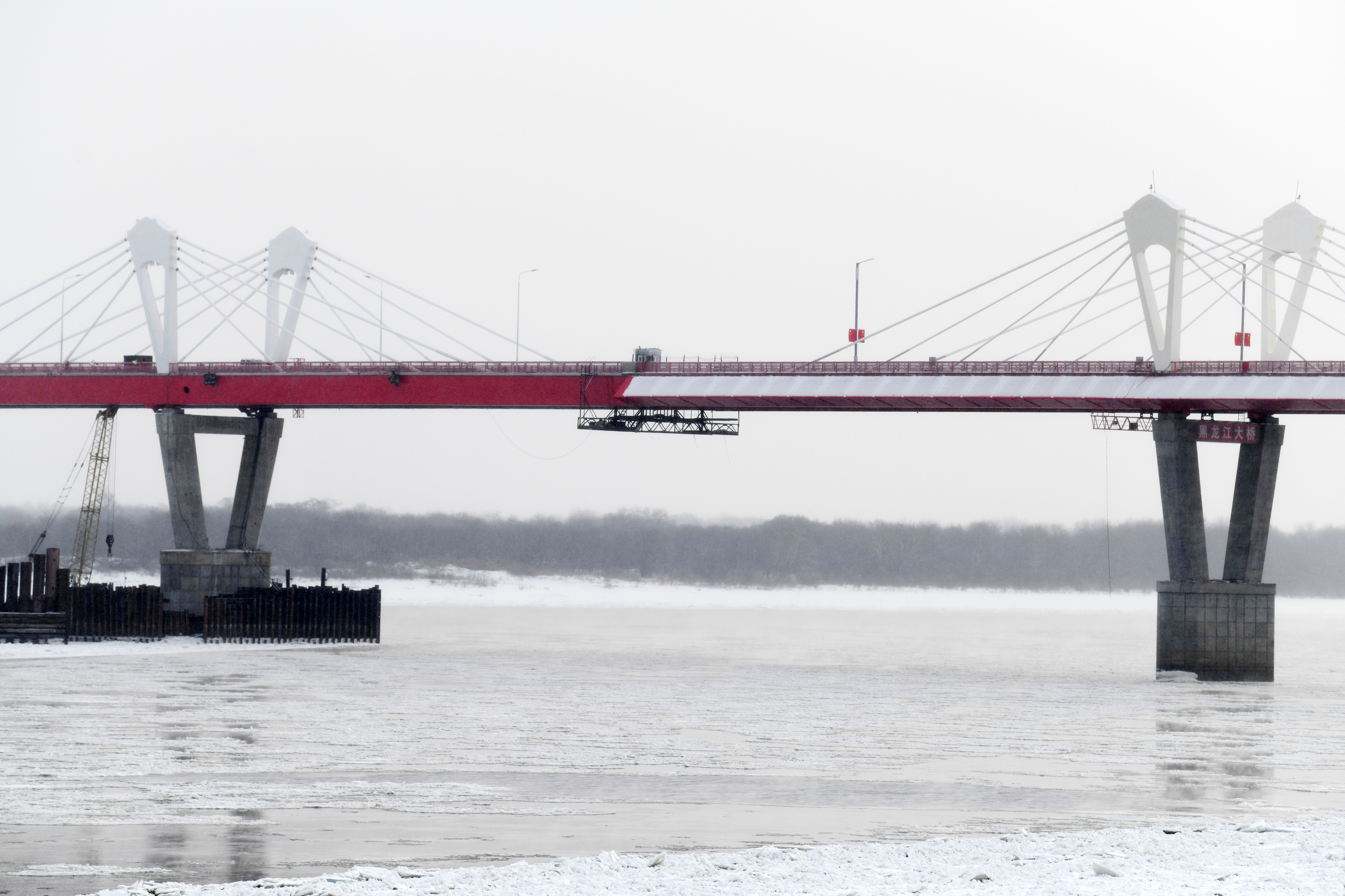 Measuring 1,284 meters long and 14.5 meters wide, the bridge across the Heilongjiang River, known in Russia as the Amur River, stretches from Heihe, a border city in Heilongjiang Province, to the Russian city of Blagoveshchensk. The bridge is expected to open in April.