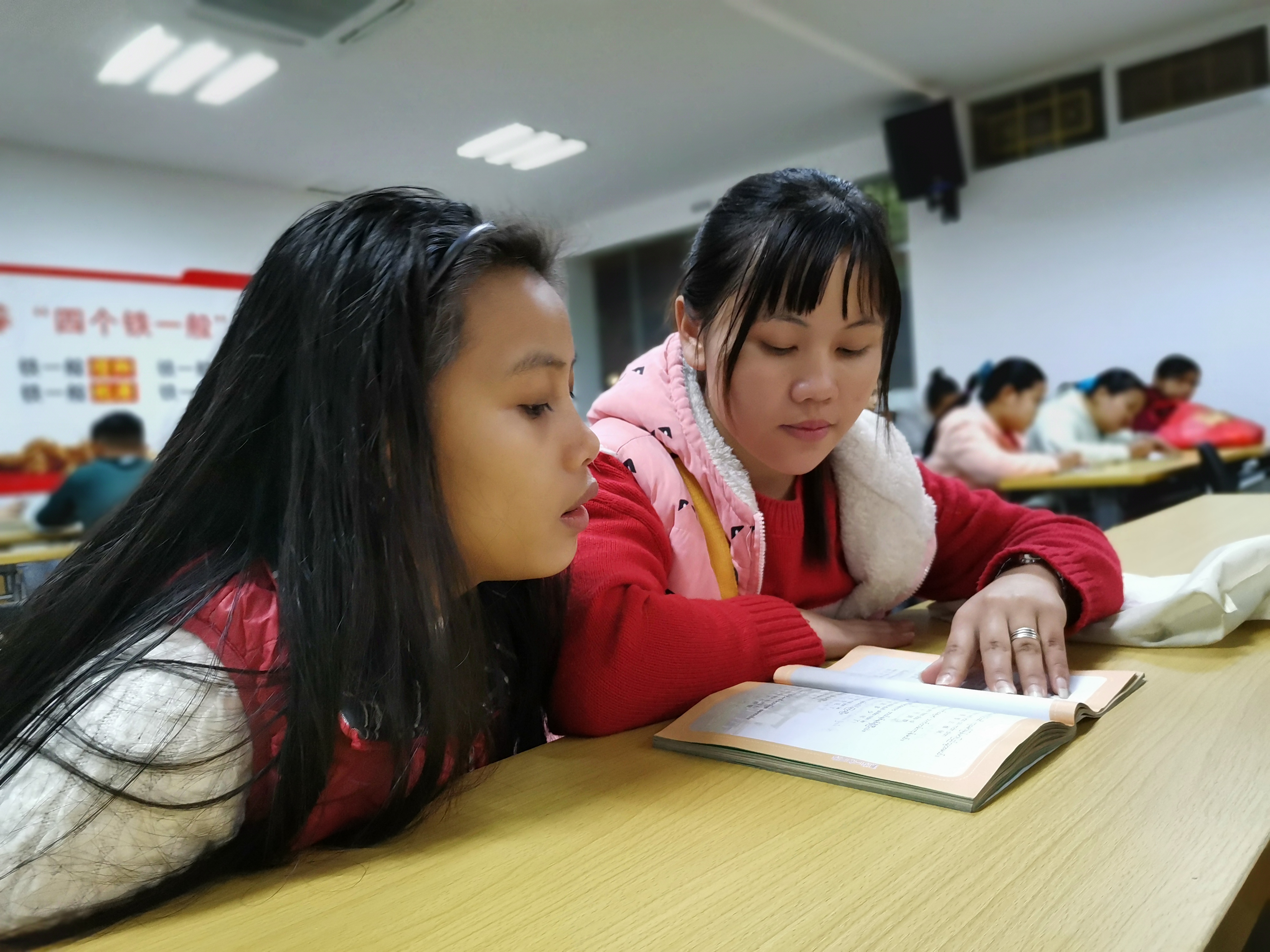 Nan Mya Mya Win is talking with one of her students in Ruili city , southwest China's Yunnan Province, Jan. 1, 2020. (Xinhua/Yao bin)