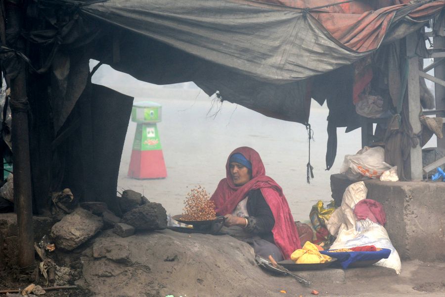 A woman cleans peanuts amidst dense fog in eastern Pakistan's Lahore on Jan. 17, 2020. (Xinhua/Sajjad)