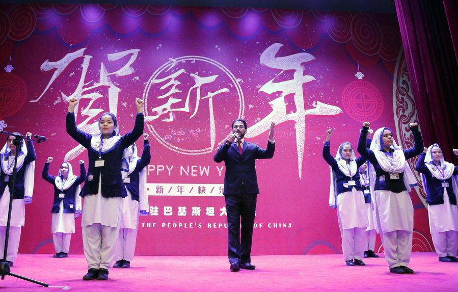 Performers sing at the reception held by the Chinese embassy in Pakistan to celebrate the forthcoming Chinese Lunar New Year in Islamabad, capital of Pakistan, Jan. 18, 2020. (Photo by Ahmad Kamal/Xinhua)