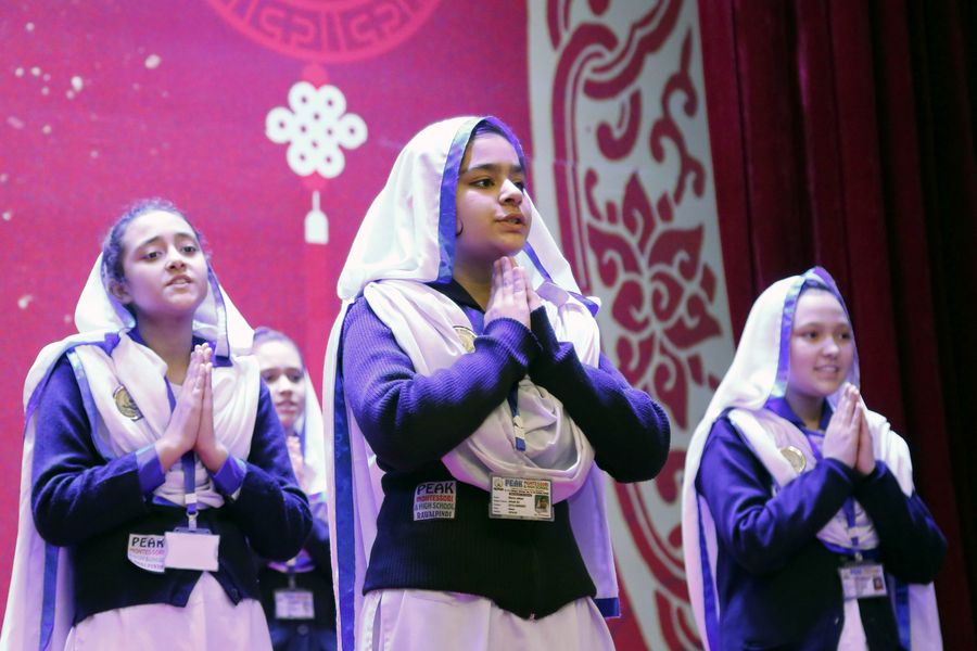 Pakistani students perform at the reception held by the Chinese embassy in Pakistan to celebrate the forthcoming Chinese Lunar New Year in Islamabad, capital of Pakistan, Jan. 18, 2020. (Photo by Ahmad Kamal/Xinhua)■