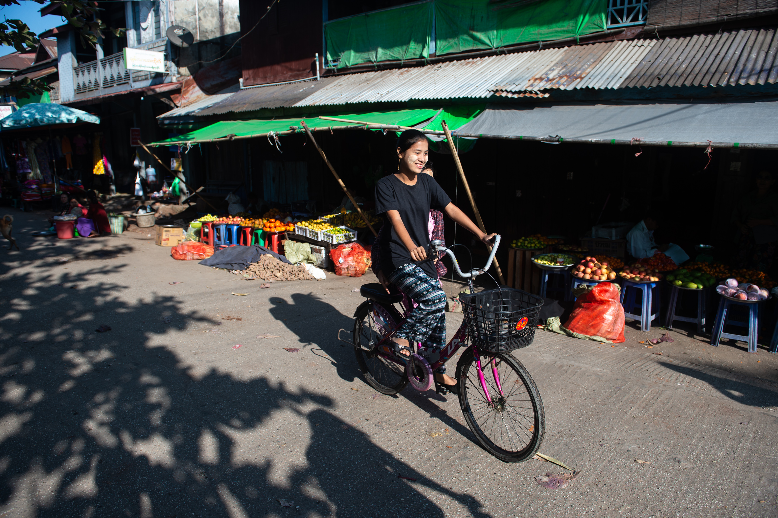 A girl rides a bicycle in Kyaukpyu, Rakhine State, Myanmar, Jan. 12, 2020. TO GO WITH XINHUA HEADLINES OF JAN. 18, 2020. (Xinhua/Du Yu)