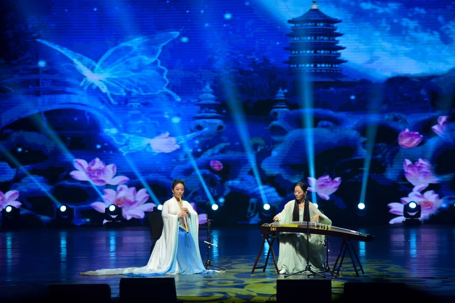Photo taken on Jan. 19, 2020 shows artists playing Chinese traditional musical instruments at the opening ceremony of China-Malaysia Year of Culture and Tourism 2020 in Kuala Lumpur, Malaysia. (Xinhua/Chong Voon Chung)