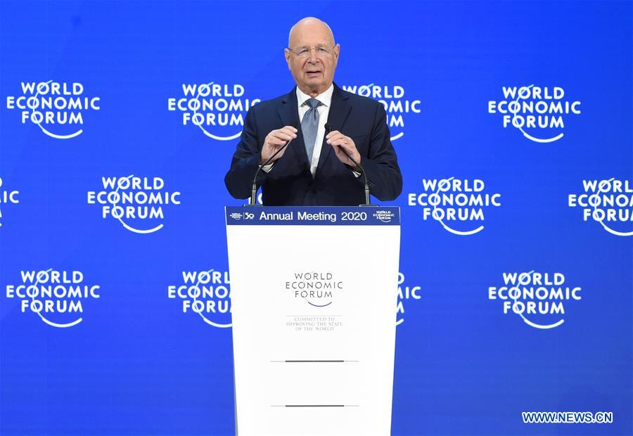 Klaus Schwab, founder and executive chairman of the World Economic Forum (WEF), speaks at the WEF annual meeting in Davos, Switzerland, Jan. 21, 2020. The WEF annual meeting opened here Tuesday with a focus on renewing the concept of stakeholder capitalism to overcome income inequality, societal division and the climate crisis. Themed "Stakeholders for a Cohesive and Sustainable World," the meeting convened around 3,000 participants from over 100 countries and regions. (Xinhua/Guo Chen)