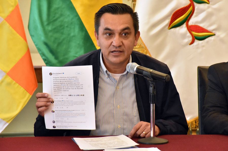 "We have made the decision to suspend diplomatic relations with the Republic of Cuba. This decision is due to recent impermissible declarations by the (Cuban) foreign minister, Bruno Rodriguez Parrilla," Nunez stated at a press conference in La Paz.