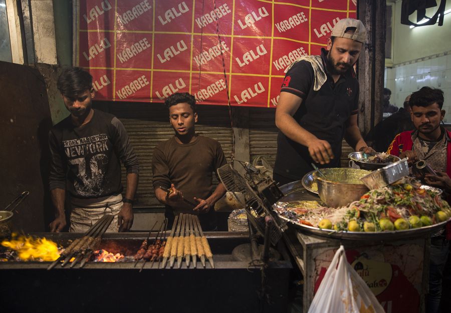 NEW DELHI, Jan. 28 (Xinhua) -- Where does that aroma come from? It's from the barbeque and fired chicken in Old Delhi, which packed with food stalls. The place is famous for street food, either for foreigners or locals.